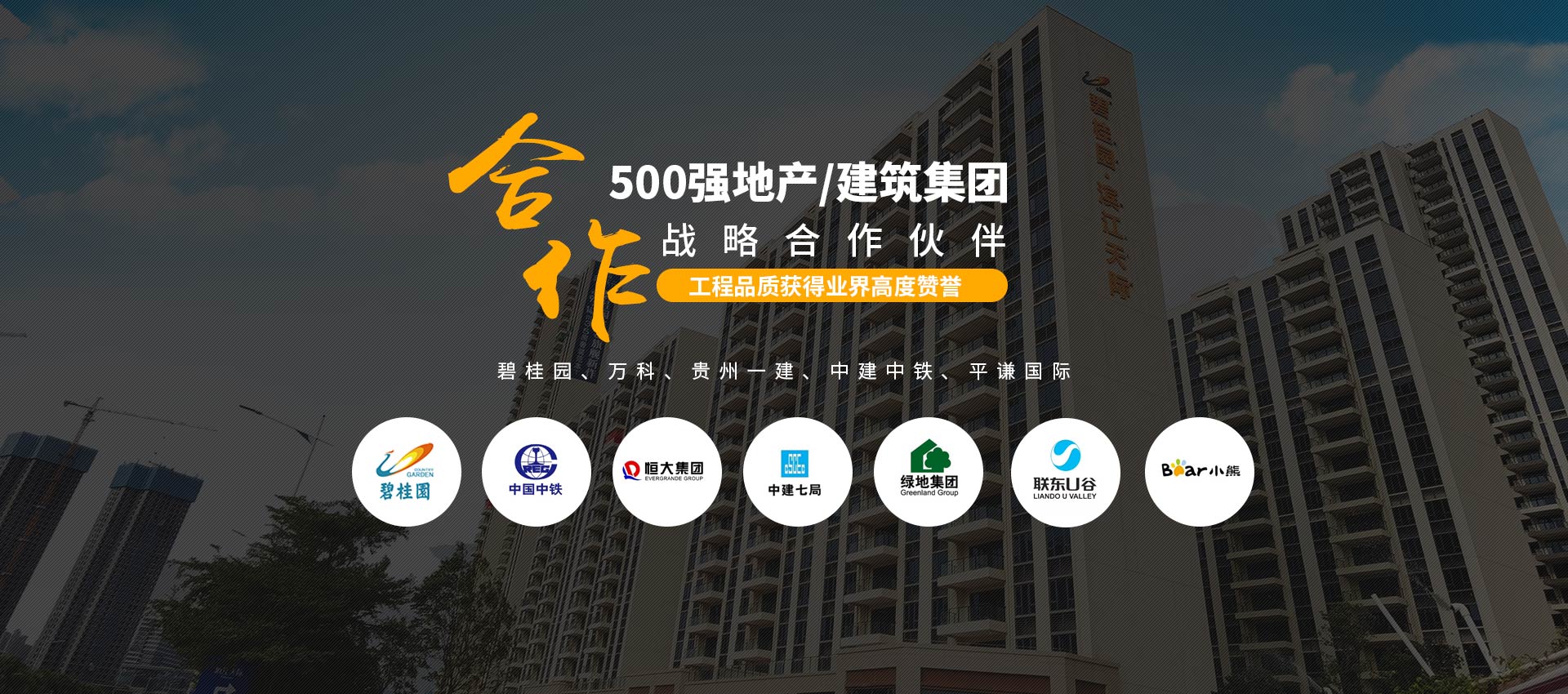 500強指定合作:與“碧桂園、萬科、貴州一建、中建中鐵、平謙國際、恒大、雅居樂”等地產(chǎn)/建筑集團(tuán)建立長期的戰(zhàn)略合作關(guān)系。